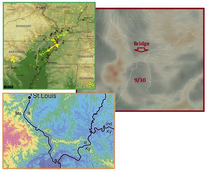 Then on October 4, the Philippine Plate was in duress, forced to tilt to absorb the Belly blowout. By forcing into and compressing the Pacific, this pushes on the top knob of S America, causing a waggle of the top and freeing the Toe of the SE Portion to move - thus resulting in the New Madrid Rupture.