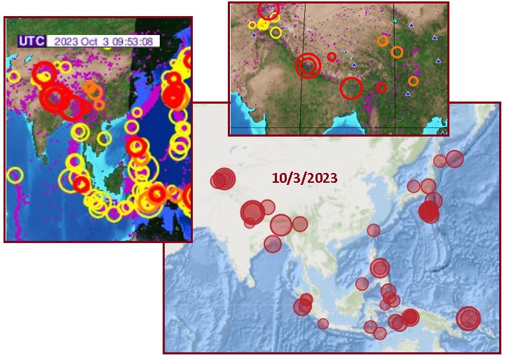 The next day on October 3 in a clear response to the China Belly blowout, big quakes along the periphery of the China highlands were recorded. If the Belly starts to move, then everything else in line will try to move also.