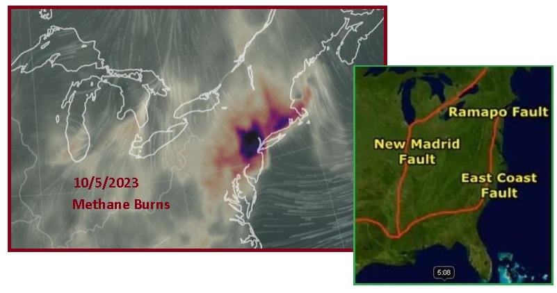 Meanwhile, back in America, on September 30 the Bridge of hard rock linking the Ozarks and Appalachia hard rock had CO from methane burns spreading across it. The Bridge is being assaulted, and when that slips the SE Portion will slide with Africa during its Roll, allowing the New Madrid Rupture to proceed.