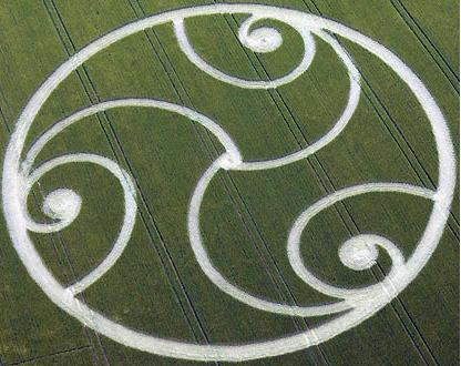 Почему это Северный и Южный полюса Солнца, являющегося доминирующим в солнечной системе гигантским магнитом, расположены в пространстве именно так, а не иначе? Для тех, кто принял участие в нашем обсуждении этого вопроса с запозданием, скажем - Солнце не меняет своей полярности на противоположную каждые 11 лет, о чем утверждает НАСА, и солнечное Магнитное Поле, влияющее на все планеты, распространяется далеко за пределы внешних границ солнечной системы. Солнце аналогично подчиняется диктату окружающих его влияний, и таким же образом, как им направляется движение планет, так направляется движение и самого Солнца. Мы упоминали, что существуют сотни видов потоков частиц, которые во время вращения Солнца истекают из его середины. Поток частиц, проявляющийся нагляднее всего, - это тот, который толкает планеты вперед по их орбитам в направлении против часовой стрелки, и известный как Сметающие Рукава Солнца, вследствие регулярных Ударов, наносимых ими во время длительного противоборства между Землей и Планетой X. Солнце также подвержено сметаниям со стороны истекающих из каких-то других мест галактики потоков, которые влияют на циркуляцию его внутренних масс, и поэтому оказывают воздействие на множество входящих и выходящих из него потоков частиц, и это влияние передается смиренным планетам, кружащимся около Солнца, как мусор, захваченный вихрем. Так как человек все еще спорит по поводу наших простых объяснений, касающихся того, как работают механизмы гравитации и магнетизма, и, несмотря на данные, полученные его собственным зондом Улисс, все еще лопочет, что его утверждения о перемене полярности Солнца верны, мы воздерживаемся от детального описания всех этих потоков частиц, поскольку следствием этого будут только бесконечные теоретические аргументы, выдвигаемые теми, у кого большое эго, а ум невелик. Но обратимся к их воздействию на Землю и к их связи с некоторыми недавно появившимися кругами на полях.