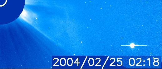 Какой объект находился около Солнца на Последнем Изображении с камеры SOHO LASCO C3 3 марта 2004 г. в направлении на 6 часов - планета или звезда? Этот объект сейчас в течение нескольких дней обходил Солнце по часовой стрелке.