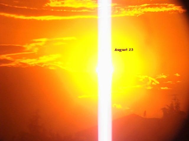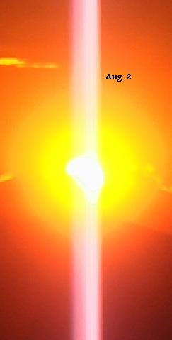 - This same location in Italy affords an apples to apples comparison on the brightness of the occulting suns during the month of August, showing that both suns are adding to the light creating the vertical flare and the light surrounding the suns.