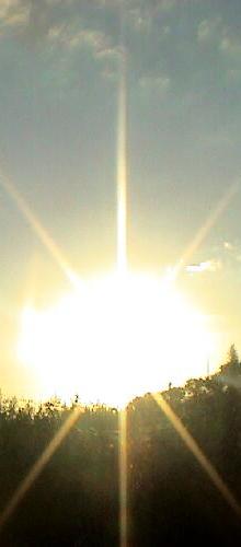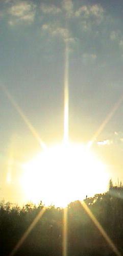 - Note that the White Persona, distinct, spherical, and pink, moves independently from the Sun while the Sun sets. 1 o'clock, then 12 o'clock and dropping into the Sun, then having dropped into the Sun at 11 o'clock where the line flare is missing, then appears at 10 o'clock with a white tail, then appears at 9 o'clock separated from the Sun to the left, then the tail still visible and moving further to the left.