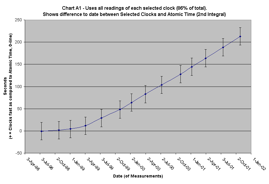 - Watched Clocks/Atomic Clocks difference: A1 (2nd Integral), A2 (1st Derivative), A3 (2nd Derivative)